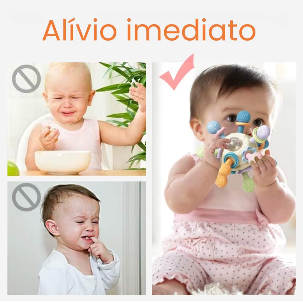 Feito de silicone macio e seguro, ele ajuda a aliviar o desconforto da gengiva durante o nascimento dos dentinhos, ao mesmo tempo que estimula os sentidos com texturas suaves e som delicado.